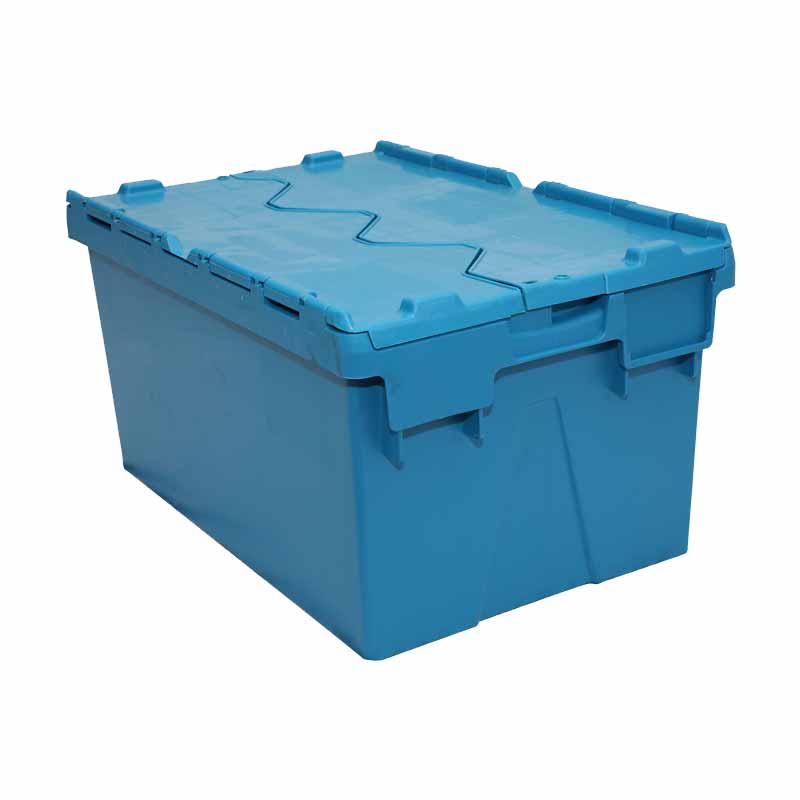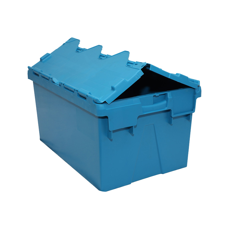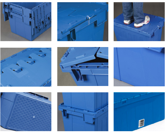 1. 物流箱為可插式、帶連體外翻箱蓋;把手搬運(yùn)舒適,空箱套入時,把手在外。