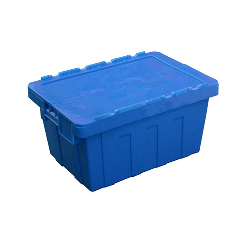 1. 物流箱為可插式、帶連體外翻箱蓋;把手搬運(yùn)舒適,空箱套入時(shí),把手在外。